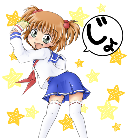 00s1girlbrown hairchildfangfemale focusgreen eyeshair ornamentschool uniformserafukushort hairshort twintailssolotacothighhighstwintailstwo side up