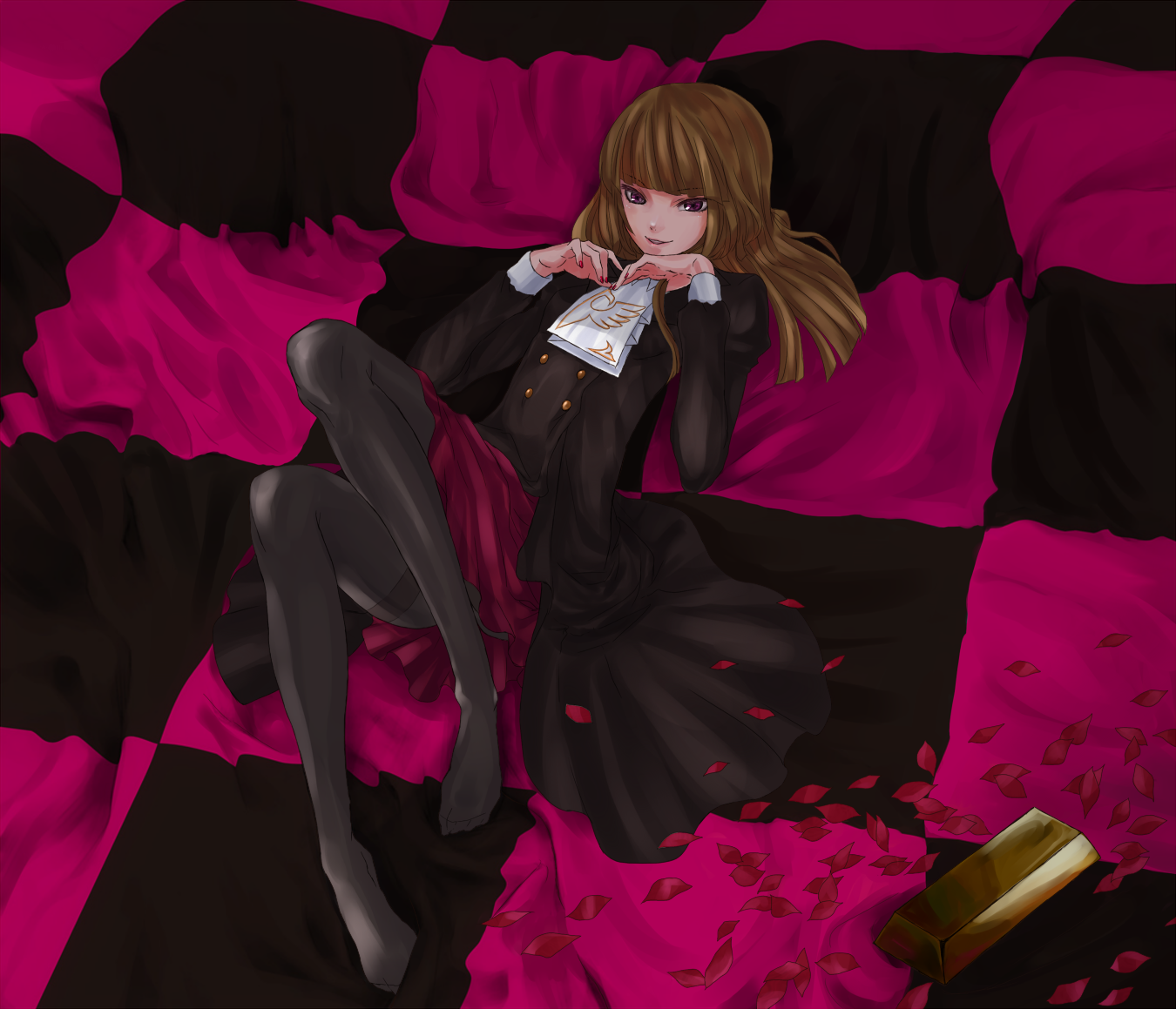demonio fleur, nico robin, one piece, commentary, highres, symbol-only commentary, unfinished, 1girl, art program in frame, black hair, blunt bangs, colored skin, crossed arms, fiocca art, floating hair, horns, japanese clothes, kimono, long hair, nude, obi, ponytail, purple sash, red skin, sash, wings, yellow eyes