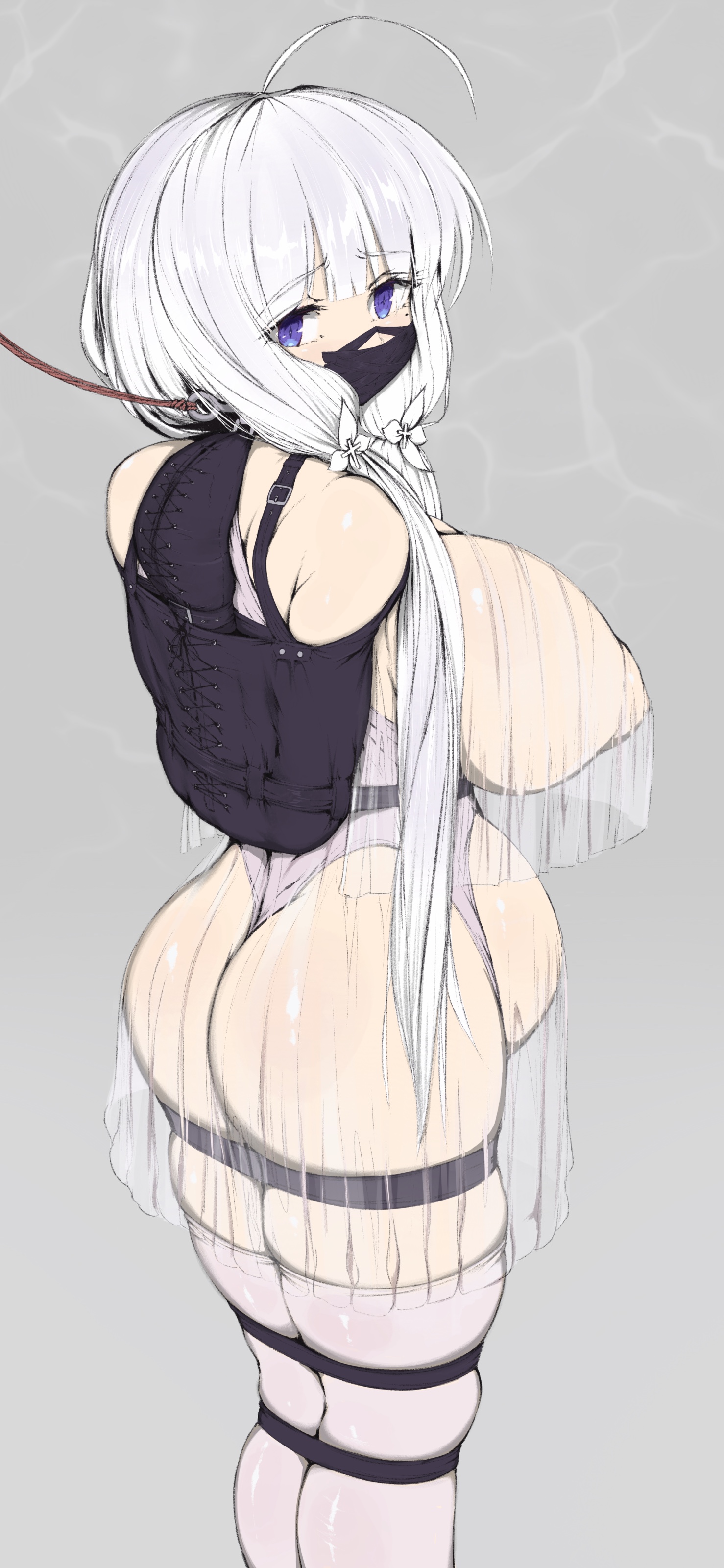 fern (bhbtr), doctor (arknights), arknights, absurdres, commission, highres, 1other, androgynous, black gloves, black jacket, black pants, black shirt, black shoes, blue eyes, blue ribbon, coat, full body, gloves, grey hair, hair intakes, hair ribbon, jacket, jewelry, long hair, looking at viewer, low-tied long hair, necklace, open clothes, open jacket, pants, ribbon, shirt, shoes, white coat, zoom layer