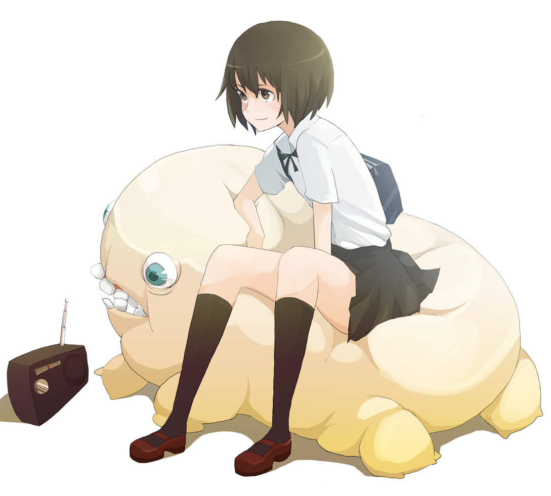 brown haircenco rollmonsterradioschool uniformshort hairsimple backgroundskirtsockssolowhite background
