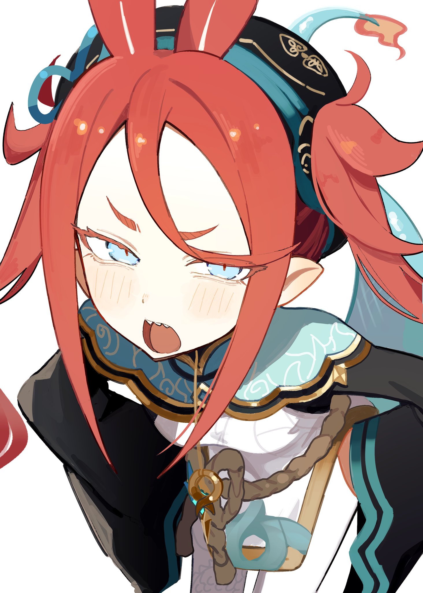 1girlaegyo salblack hatblack sleevesblue eyesblue tailbreastschinese clotheschixia (stella sora)close-upcowboy shotdouble-parted bangsdragon girldresseastern dragon tailembroideryfanged bangsfireflame-tipped tailflipped bangsforeheadfrom abovefurisode sleeveshands on own hipshatleaning forwardlight blushlong hairlong sleeveslooking at vieweropen mouthpantyhosepelvic curtainpointy earsred hairropesharp teethshort dressshort eyebrowsside slitsidelockssimple backgroundsmall breastssolotailtail raisedteethtsurimetwintailsupper teeth onlyv-shaped eyebrowswhite backgroundwhite dresswhite pantyhosewide sleevesyunjian