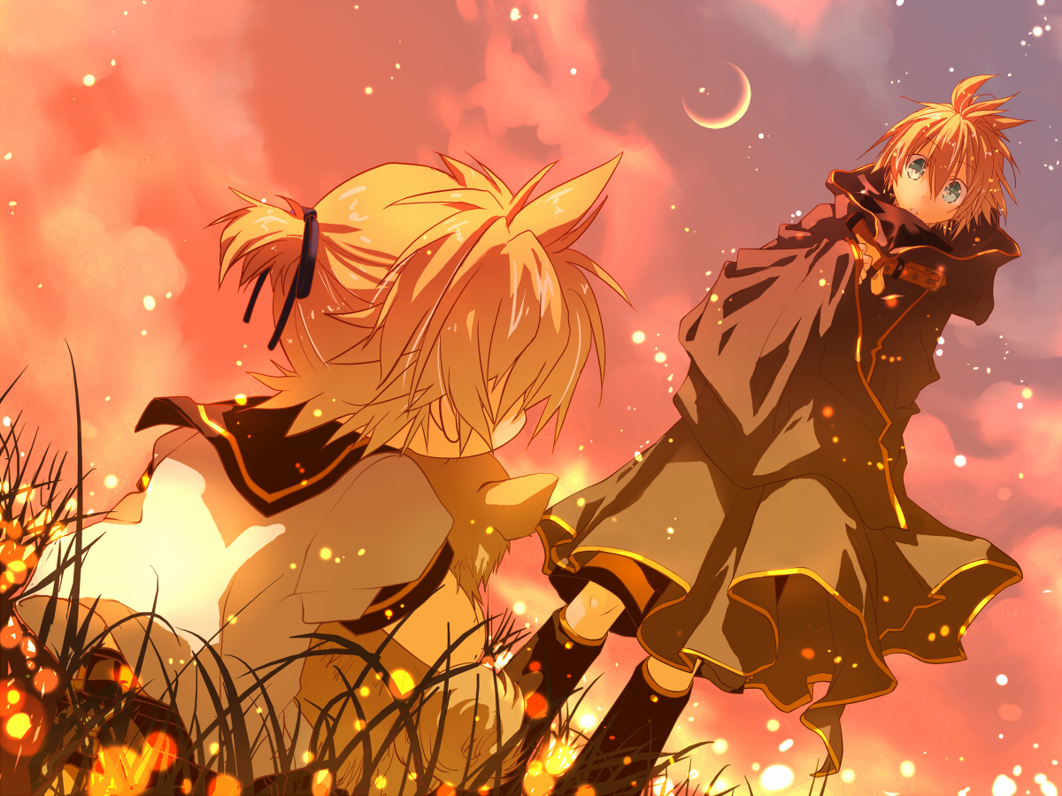 2boysanimalblonde hairchildcloakdual personamale focusmoonmultiple boysponytailshort hairshort ponytailskysunsettime paradox