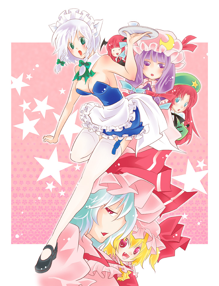 6+girlsbat wingsblonde hairblue eyesblue hairbraidbreastscleavagefemale focusgreen eyeshathead wingslarge breastslong hairmultiple girlspurple hairred eyesred hairshort hairthighhighstwin braidswaitresswings