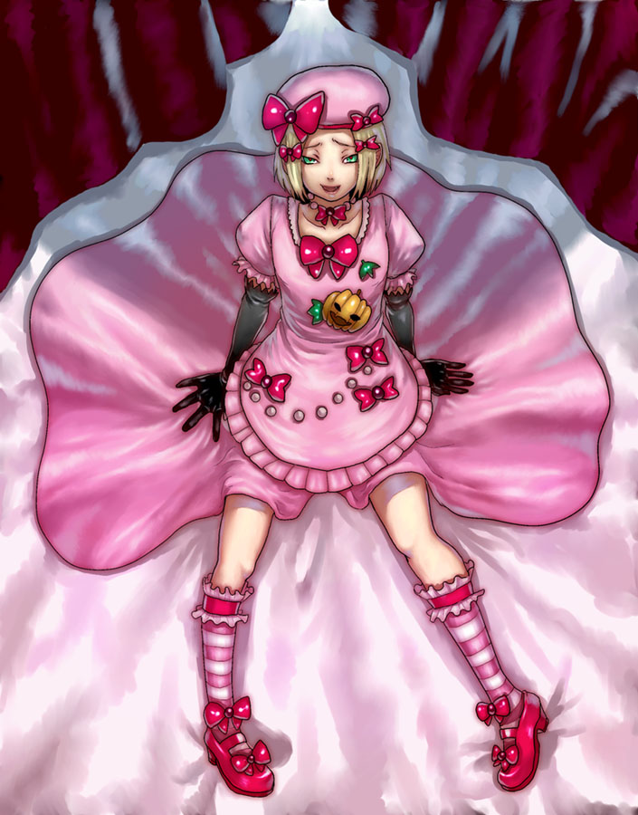 00s1girlblonde hairdresselbow glovesfemale focusgloveshatpink hatribbonsockssolostriped clothesstriped socks