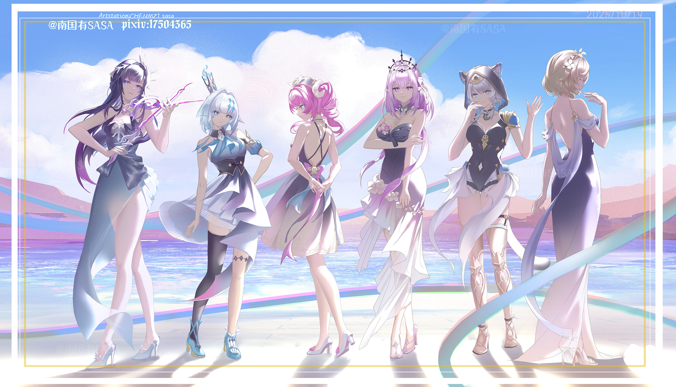 6+girlsalternate costumeanimal earsarm under breastsarms behind backbackless dressbackless outfitbare shouldersblack tiarablonde hairblue dressblue eyesblue hairblue shoesblue skybow (music)breastscat earscat girlcat tailcleavageclosed mouthcloudcrowndressdrill hairears through hoodflowerfrom behindfull bodygradient clothesgradient dressgreen eyesgrey hairhair flowerhair intakeshair ornamenthand uphands uphigh heelsholdingholding bow (music)hooded leotardinstrumentlarge breastslong hairlooking at viewermini crownmountainous horizonmultiple girlsmusicoutdoorspink hairplaying instrumentpointy earspurple dresspurple eyespurple hairshoesshort hairsingle thighhighskysmiletailthighhighstiaratwin drillstwintailsvery long hairwaterwhite shoes