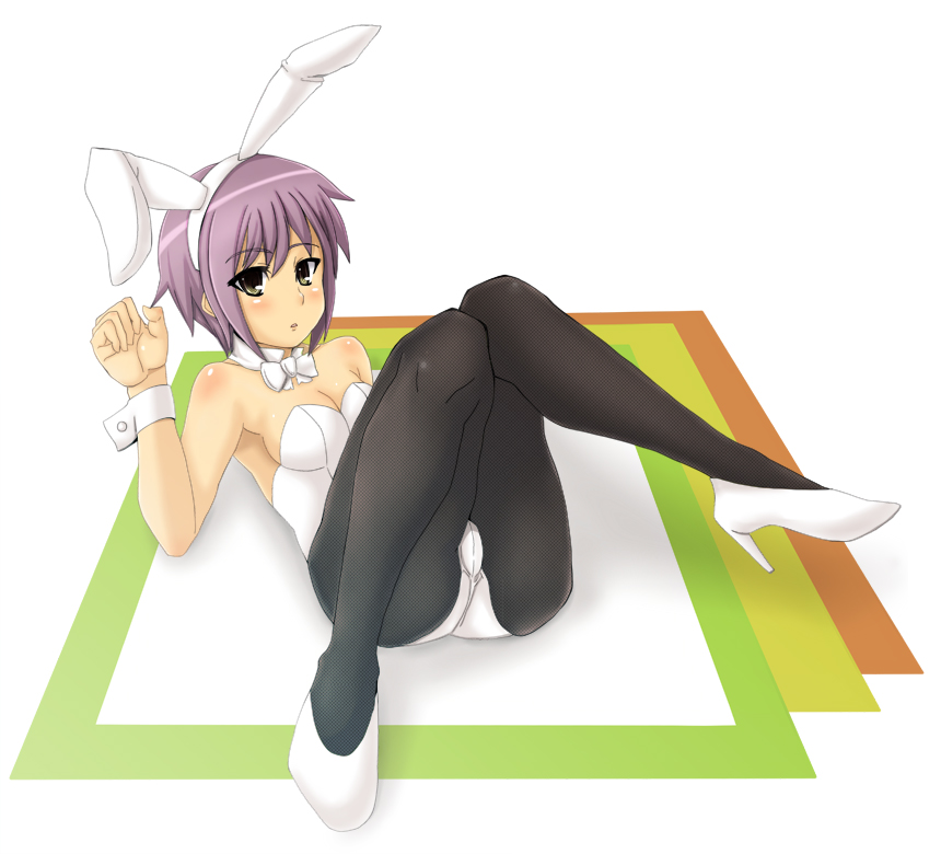 00s1girlanimal earsbrown eyesfake animal earsfat monsfemale focusfull bodygrey hairhigh heelslyingpantyhoseplayboy bunnypurple hairrabbit earsshoesshort hairsimple backgroundsolo