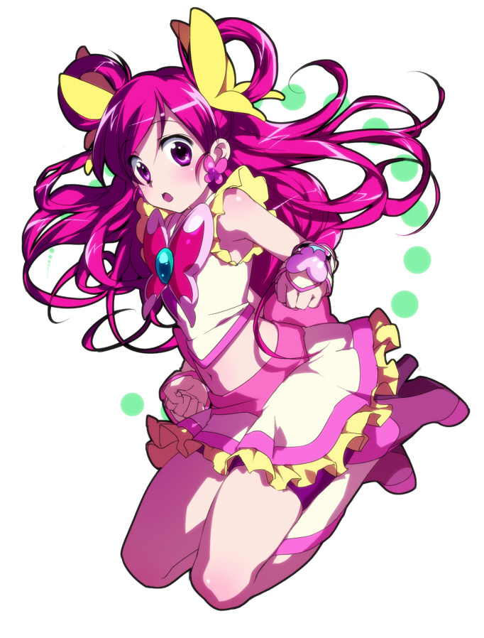 higuchi shuu, sawatari mitsuki, comiket, comiket 68, kore ga watashi no goshujin-sama, 00s, 1girl, :d, apron, bare shoulders, black thighhighs, blonde hair, bridal gauntlets, covered erect nipples, detached collar, dot nose, elbow gloves, female focus, flat chest, garter straps, gloves, long hair, looking at viewer, maid, maid headdress, nakabayashi yoshitaka's maid uniform, one eye closed, open mouth, pointing, smile, solo, thighhighs, twintails, upside-down, waist apron, white gloves, wink, zettai ryouiki