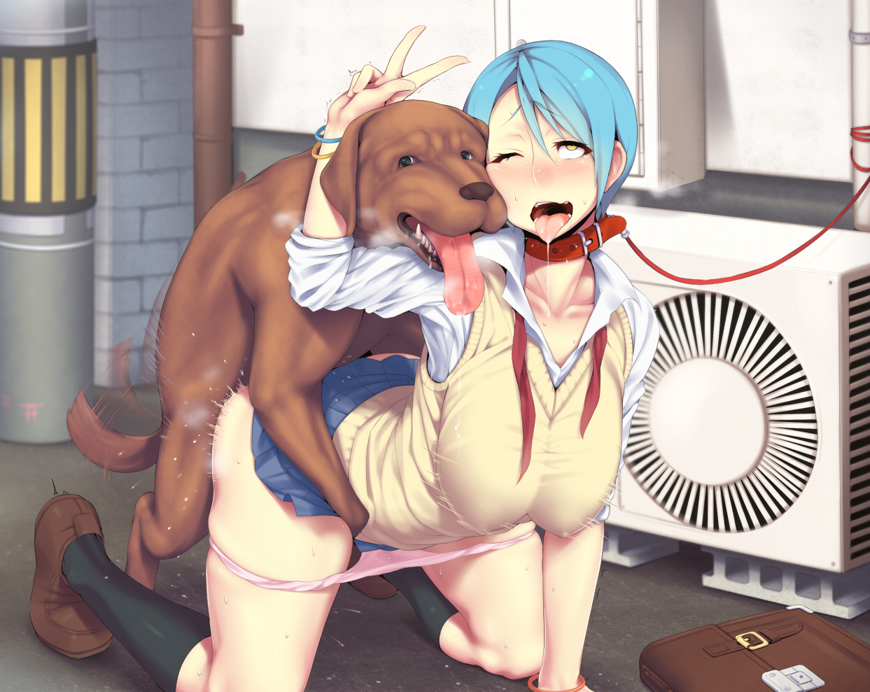 air conditionerbagblue hairblushbreastscaninecollardoggy styledominant feralfemalefemale on feralferalFlag for Deletionfootwearhearthuge breastshuman on feralkneehighsleashmessenger bagopen mouthpantiespanty pullpink pantiesschool uniformsexshort hairshoulder bagsockssweatunderwearvvestwinkyellow eyesszoophilia