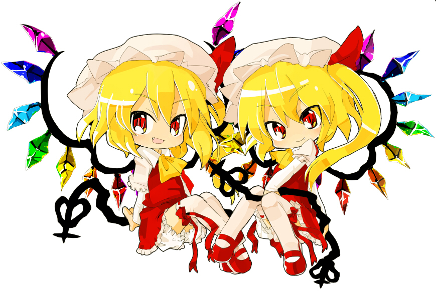 2girlsblonde hairchibiclonefangfemale focushatmary janesmultiple girlsone side upponytailred eyesshoesshort hairside ponytailthighhighswings