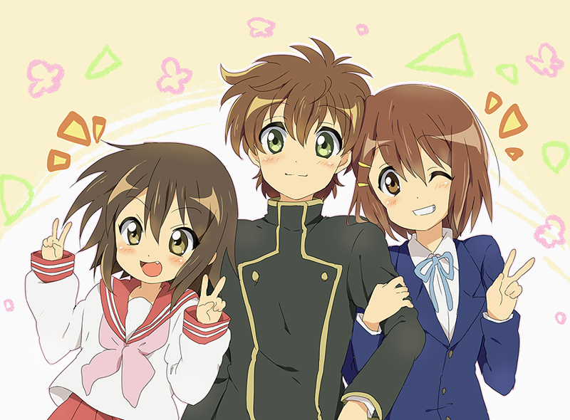 akaneya, 95-tan, visbou, vista-tan, os-tan, 2girls, glasses, monochrome, multiple girls, ninja, spot color