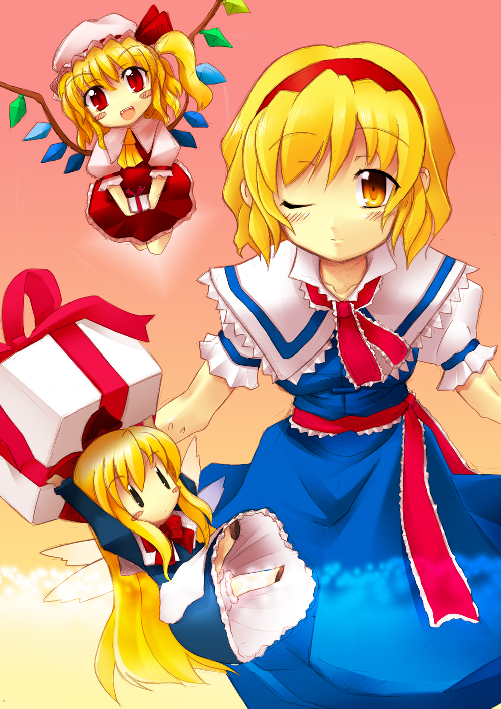 miyama-zero, shirogane akane, shirogane tobari, togetsu kotarou, kanojo tachi no ryuugi, hand on head, absurdres, highres, 1boy, 2girls, antenna hair, bed, blonde hair, blue eyes, blush, brown hair, clothed female nude male, grabbing another's chin, group sex, hair ribbon, hand on another's chin, holding hands, hug, long hair, looking back, lying, multiple girls, navel, necktie, nude, on back, on side, quad tails, ribbon, school uniform, short hair, siblings, sisters, smile, twins, twintails
