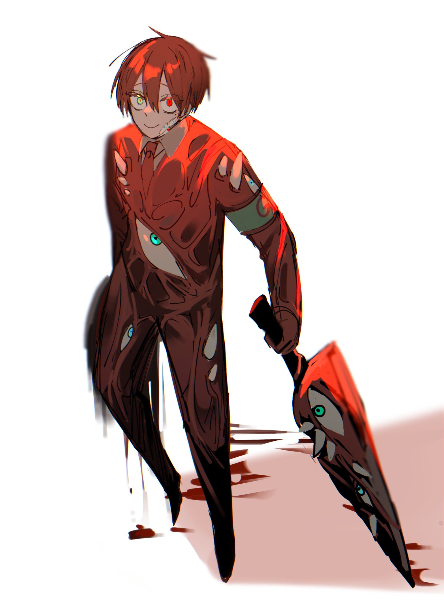 1boy779 nnkarmbandbloodblood on groundclosed mouthcollared shirte.g.o (project moon)formal clothesgreen armbandgreen eyesheterochromiaholdingholding swordholding weaponjacketmale focusmimicry (e.g.o)necktiered eyesred hairred jacketred necktieshirtshort hairsimple backgroundsmilesolosuitsuit jacketswordweaponwhite background