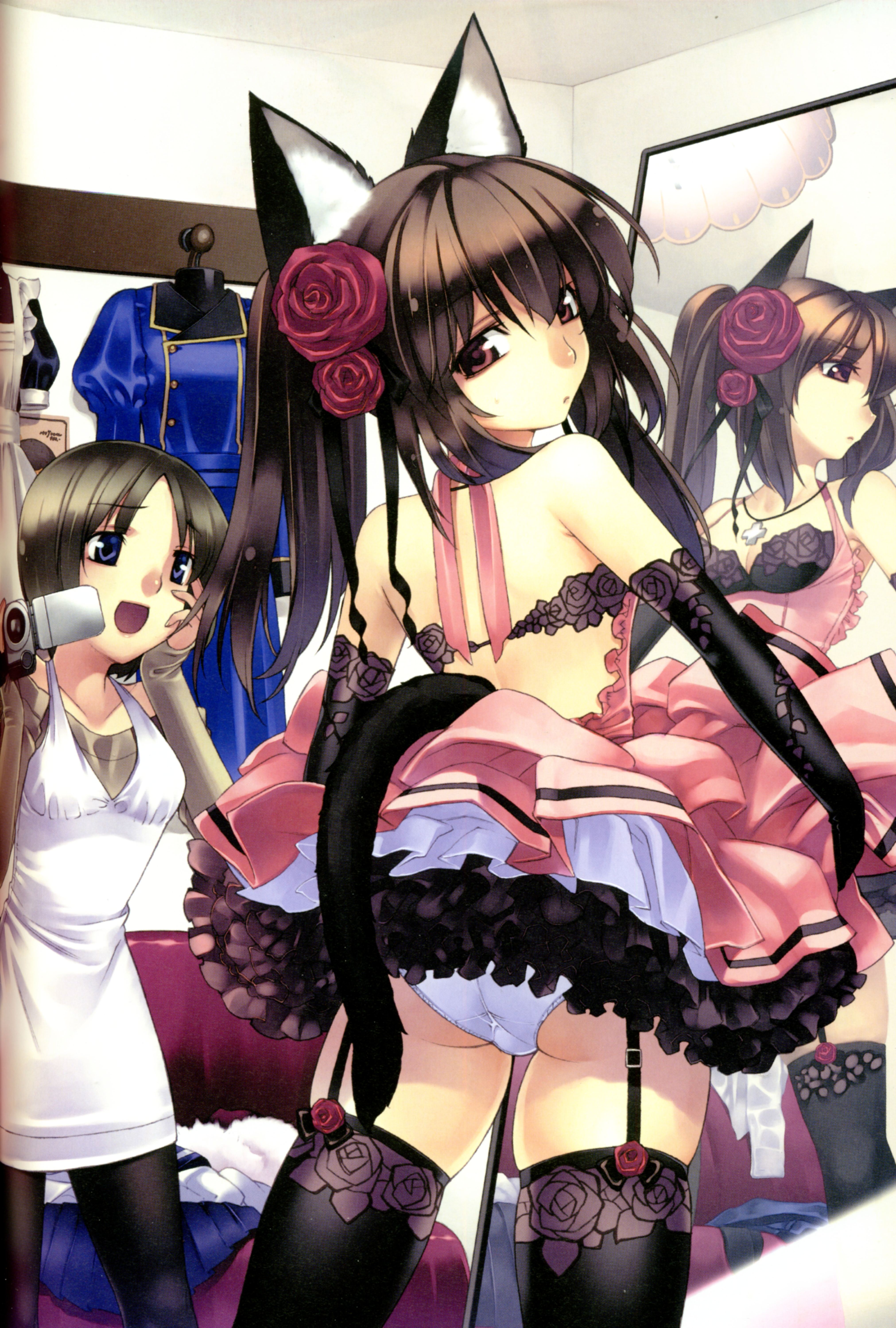 :d1boy2girlsanimal earsassbare shouldersblack glovesblue eyesblue hairbrown haircameracat earscat tailclothes liftcowboy shotcrosscross necklaceelbow glovesflowerfrom behindgarter beltgarter strapsgloveshair flowerhair ornamenthand on own cheekhand on own faceindoorsjewelrylacelace trimlace-trimmed gloveslong hairlooking at anotherlooking at viewerlooking backmirrormultiple girlsnecklaceopen mouthpantiespantyhosepetticoatred eyesred flowerred rosereflectionroseshort hairskirtskirt liftsmilestandingtailthighhighstrefoiltwintailsunderbustunderwearwhite panties
