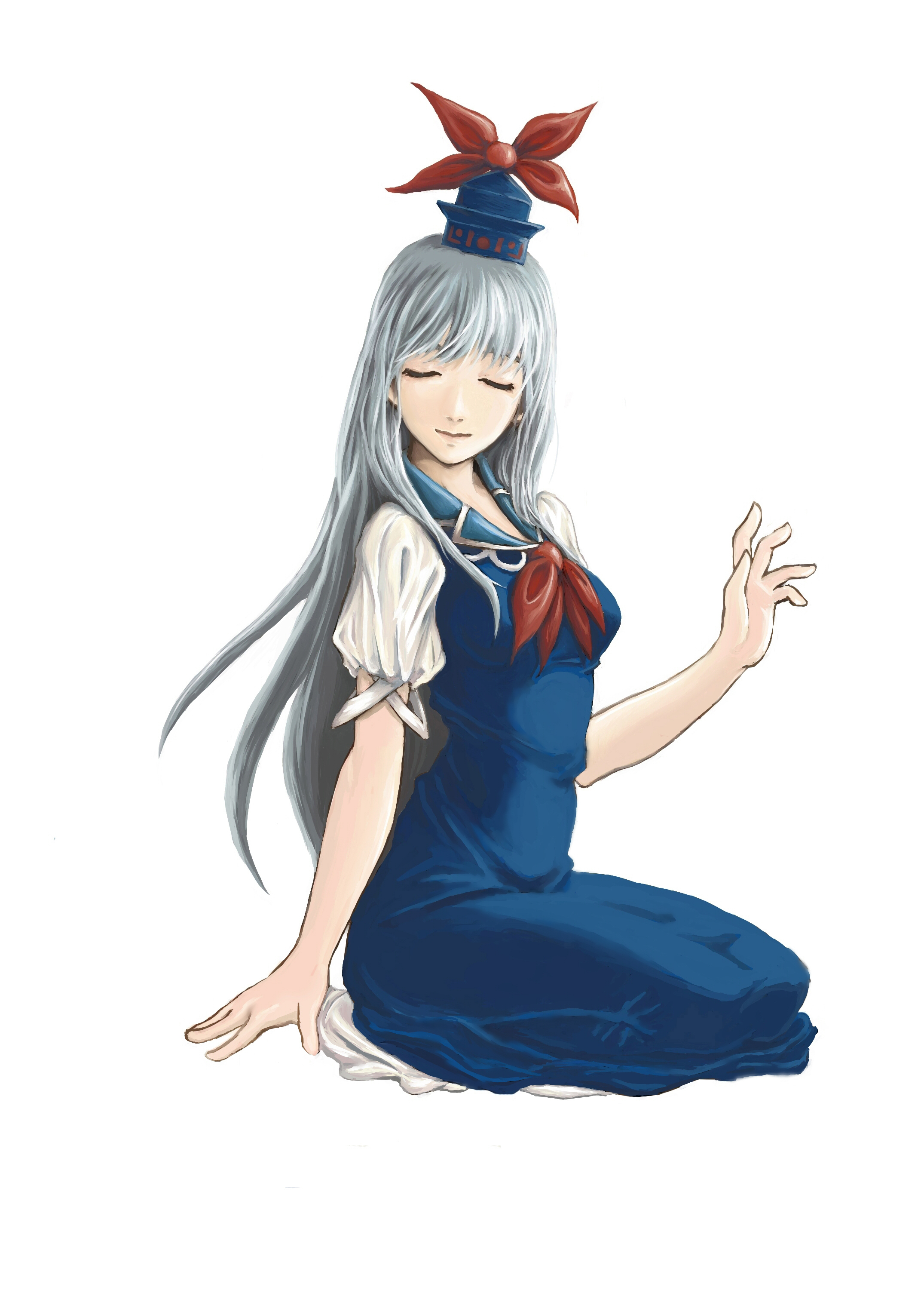 rakugaki ningen, kagamine rin, vocaloid, 1girl, blonde hair, blue eyes, blush, closed mouth, dot nose, hair ornament, hairclip, looking at viewer, parallel hairclips, portrait, simple background, solo, swept bangs, upper body, white background