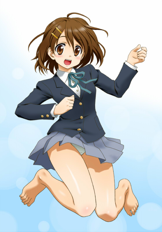 00s1girlair guitarbarefootbrown eyesbrown hairfeetfemale focusjumpingopen mouthpantiespantyshotround teethschool uniformshort hairsoloteethtoesunderwearupskirt