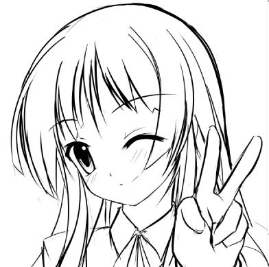 00s1girlblunt bangsfemale focusgreyscalehime cutmonochromeone eye closedsimple backgroundsketchsmilesolovwink