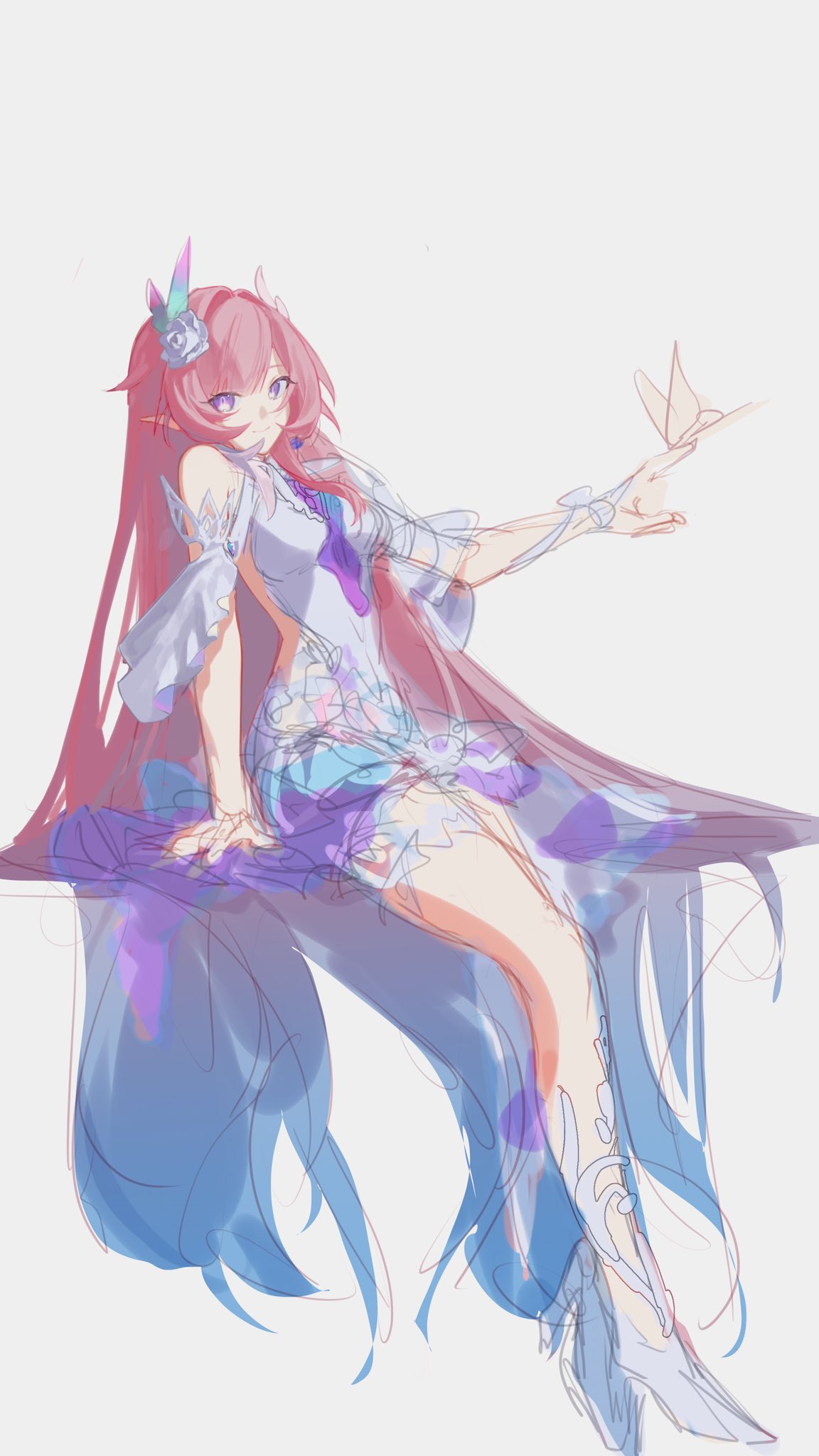 1girlakaguchi 35aqua hairbootsbreastsbugbutterflybutterfly on handdiamond (shape)diamond-shaped pupilsdressflowergradient hairhair flowerhair ornamentinsectlong hairlooking at viewermedium breastsmulticolored hairpink hairpurple eyessimple backgroundsolosymbol-shaped pupilsthighstwo-tone hairvery long hairwhite backgroundwhite bootswhite dress