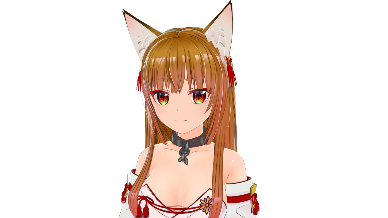 1girl3danimal earsbare shouldersbreastsbrown hairchainchain leashcollarfox earsfox girlhair downjapanese clotheskimonoleashlong hairmedium breastsmetal collarmulticolored eyesred eyessoloupper body