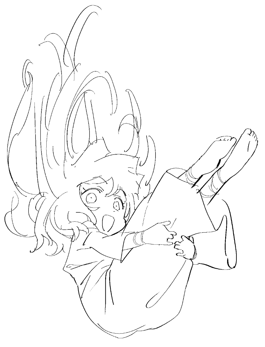 :d1girlbandagesbarefootfull bodygreyscalelong hairlooking at viewermonochromeopen mouthsimple backgroundsmilesolo
