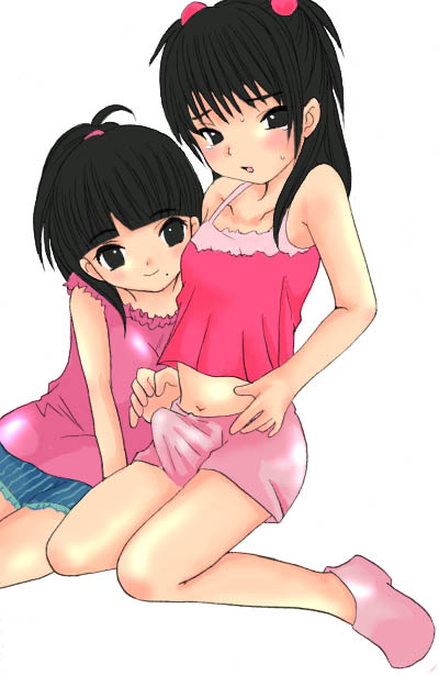1boy1girlbeadsblack hairbulgeerectionerection under clotheshair beadshair ornamentlolishoesshortsshotasimple backgroundtrap