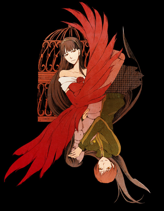ozawa kou, suigintou, rozen maiden, silver hair, traditional media, 00s, 1girl, alternate costume, bare shoulders, barefoot, cross, cross print, dress, feet, female focus, flower, full body, hairband, legs, lips, lolita fashion, long hair, lying, on side, ribbon, rose, solo