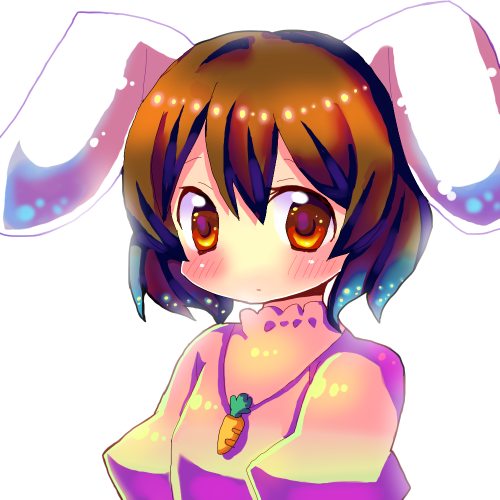 1girlanimal earsbrown haircarrotfemale focusorange eyesrabbit earsshort hairsimple backgroundsoloupper bodywhite background