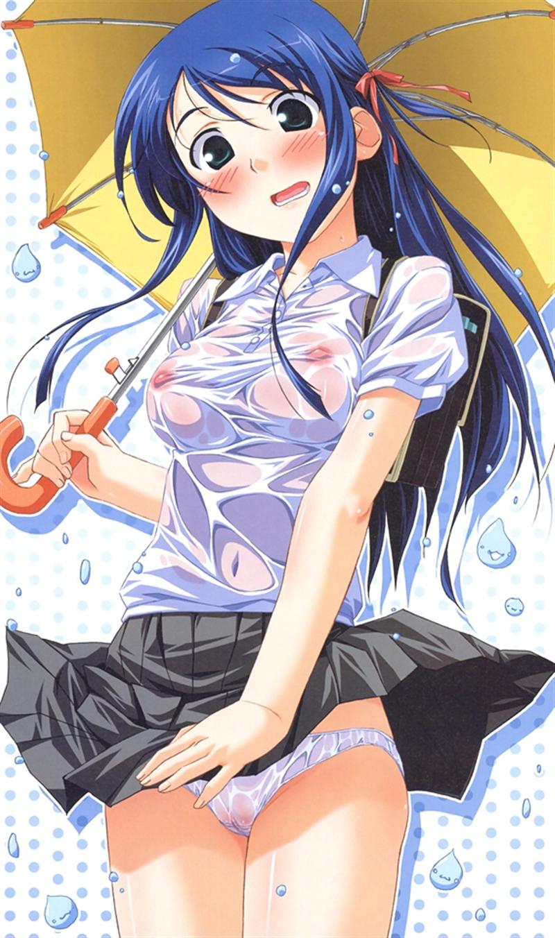 1girlbagblue hairblushbreastsclothes liftcovered erect nipplesembarrassedfemale focusgreen eyeshair ribbonlong hairminiskirtnipplesno braopen mouthpantiespantyshotpleated skirtpussyrainribbonsee-through clothesskirtskirt liftsolostandingumbrellauncensoredunderwearupskirtwet