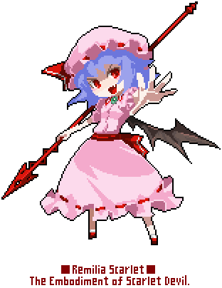 1girlbat wingsblue hairdressfemale focusforeshorteningfull bodyhatpixel artpolearmred eyesshort hairsolospearspear the gungnirstandingtransparent backgroundweaponwings
