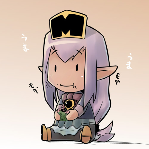 00s1girlchibieatingelffemale focusfoodfull bodygradient backgroundlong hairpointy earspurple hairsittingsolo