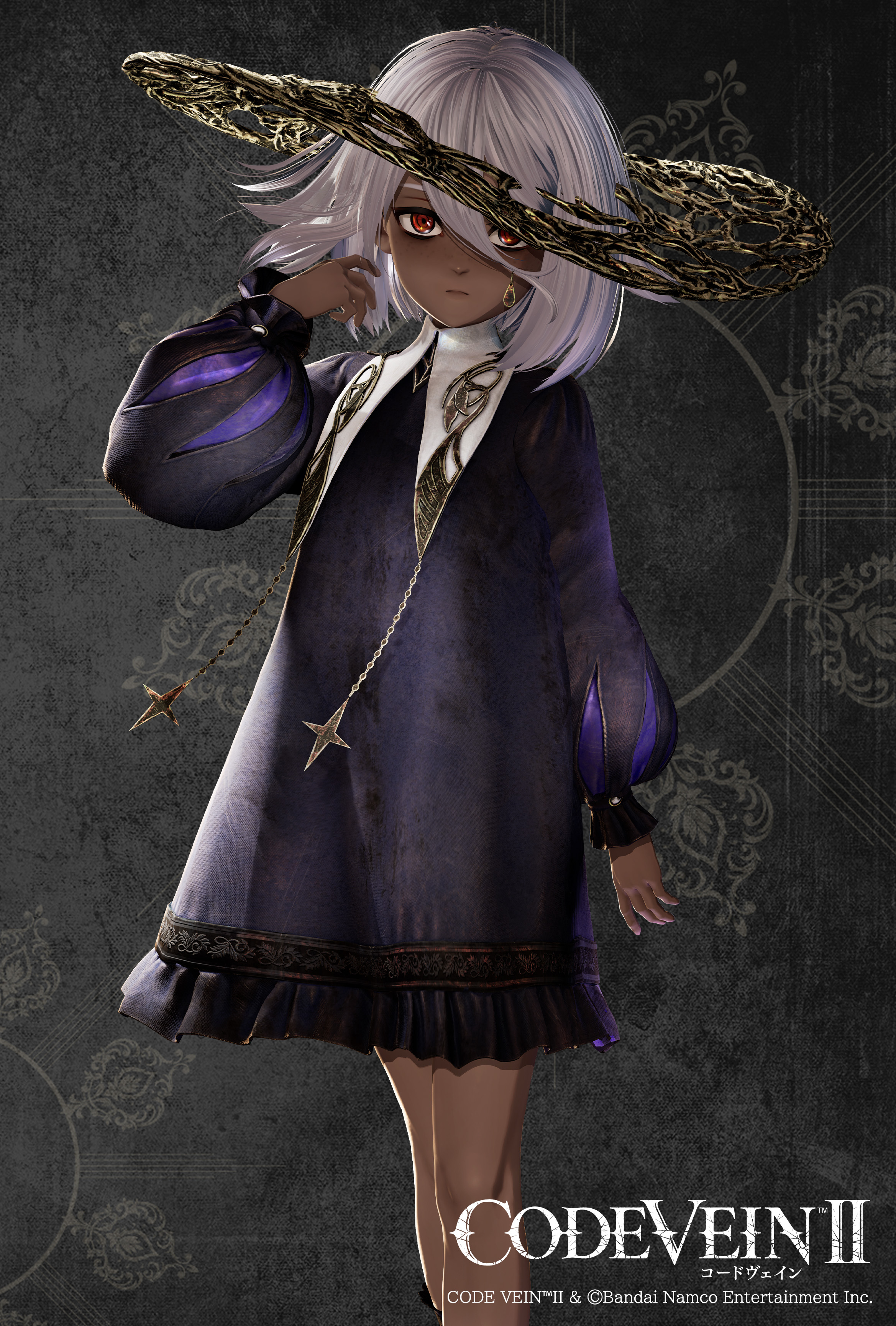 1girl3dblack dressdark skindark-skinned femaledressexpressionlessgrey hairhalolooking at viewerlycoris (code vein)short hairsolo