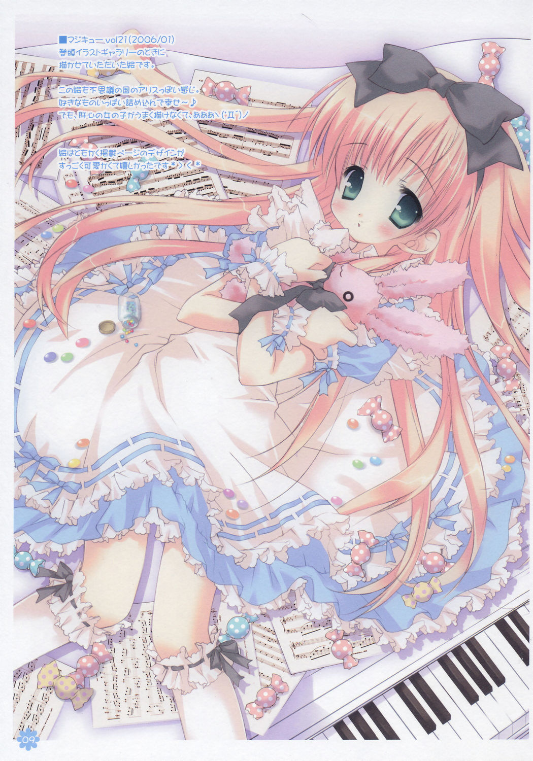 1girlbass clefbeamed quaversblonde hairbowbow legwearcandyfemale focusflat signfoodfrilled socksfrillsgrand pianogreen eyeshair bowinstrumentjelly beankneehighslyingmusical noteon backpianopiano keysquaverquaver restrabbitribbon trimribbon-trimmed clothesribbon-trimmed legwearsheet musicsockssolostuffed animalstuffed rabbitstuffed toytreble clefwhite sockswrist cuffs
