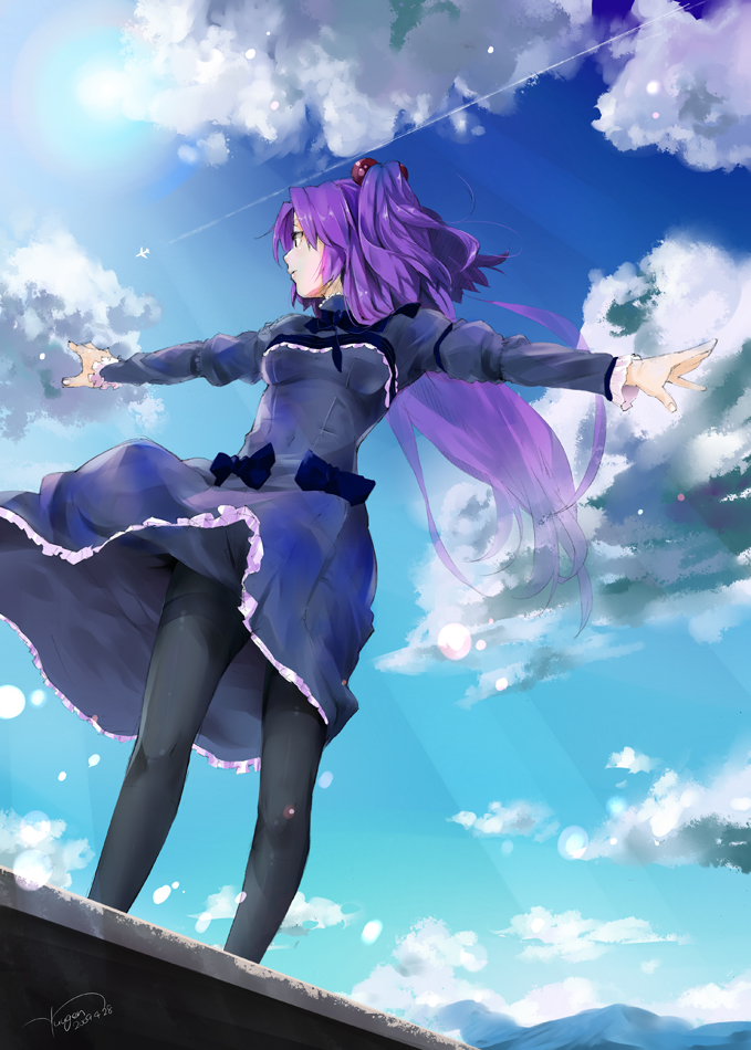 00s1girl2009aircraftairplanealternate costumearms upbreastscloudcontraildaydressdutch anglefemale focusflyingfrom belowhair bobbleshair ornamentlens flarelight rayslong hairlooking afaroutstretched armspantyhosepurple hairsignatureskysolosparklespread armssunsunbeamsunlightthighband pantyhosetwintailstwo side upwindwind lift
