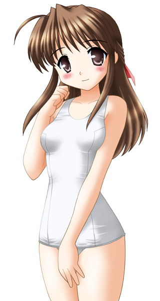 00sbrown eyesbrown hairlong hairone-piece swimsuitschool swimsuitswimsuitwhite one-piece swimsuitwhite school swimsuit