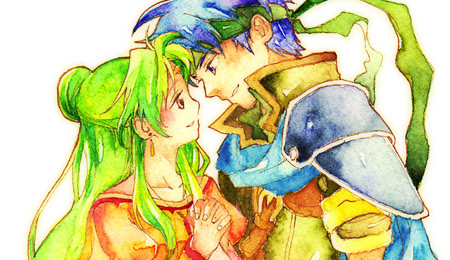 1boy1girlarmorblue eyesblue hairbrown eyesearringsgreen hairhalf updoheadbandheterojewelrylong hairprincesssmile