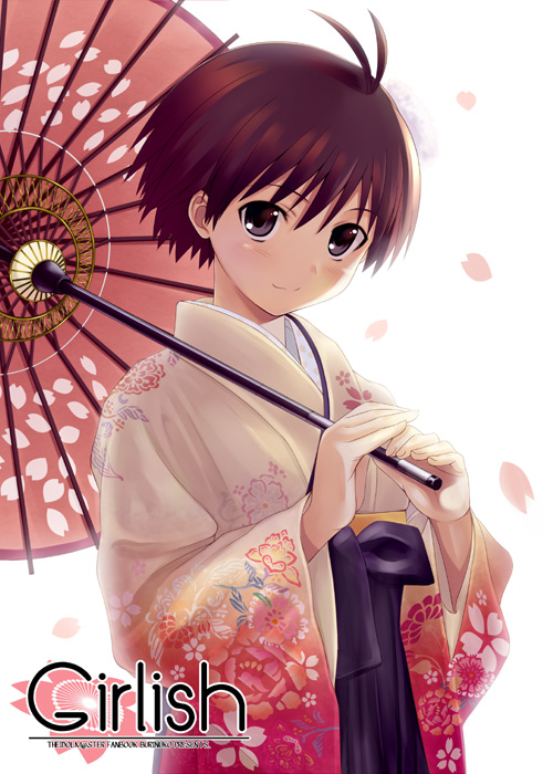 00s1girlantenna hairblack hairfemale focusjapanese clotheskimonooil-paper umbrellashort hairsoloumbrella