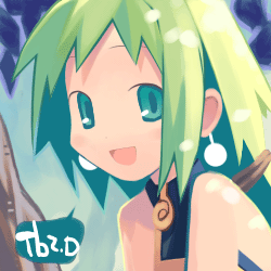 :d1girlaqua pupilsbare shouldersblack dresscollared dressdappled sunlightdressearringsgreen eyesgreen hairhair tiehappyharada takehito (style)jewelryleaflight blushlong hairlooking at viewerlow ponytailno scleraopen mouthponytailsignaturesleevelesssleeveless dresssmilespiked hairsunlighttonguetree