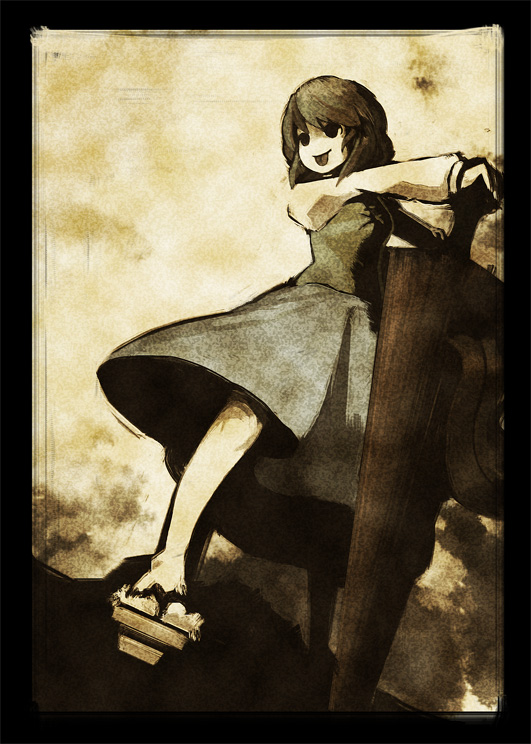 :p1girlfemale focusgetakarakasa obakemonochromemuted coloroil-paper umbrellasandalssepiashort hairsolotonguetongue outumbrella