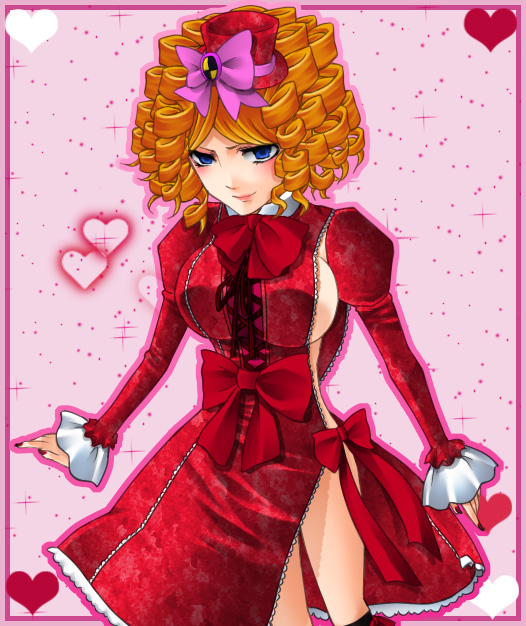 00s1girlblonde hairblue eyesbowbreastscurly hairfemale focusfrillshatheartmini hatmini top hatpink bowred hairsideboobsolotop hat
