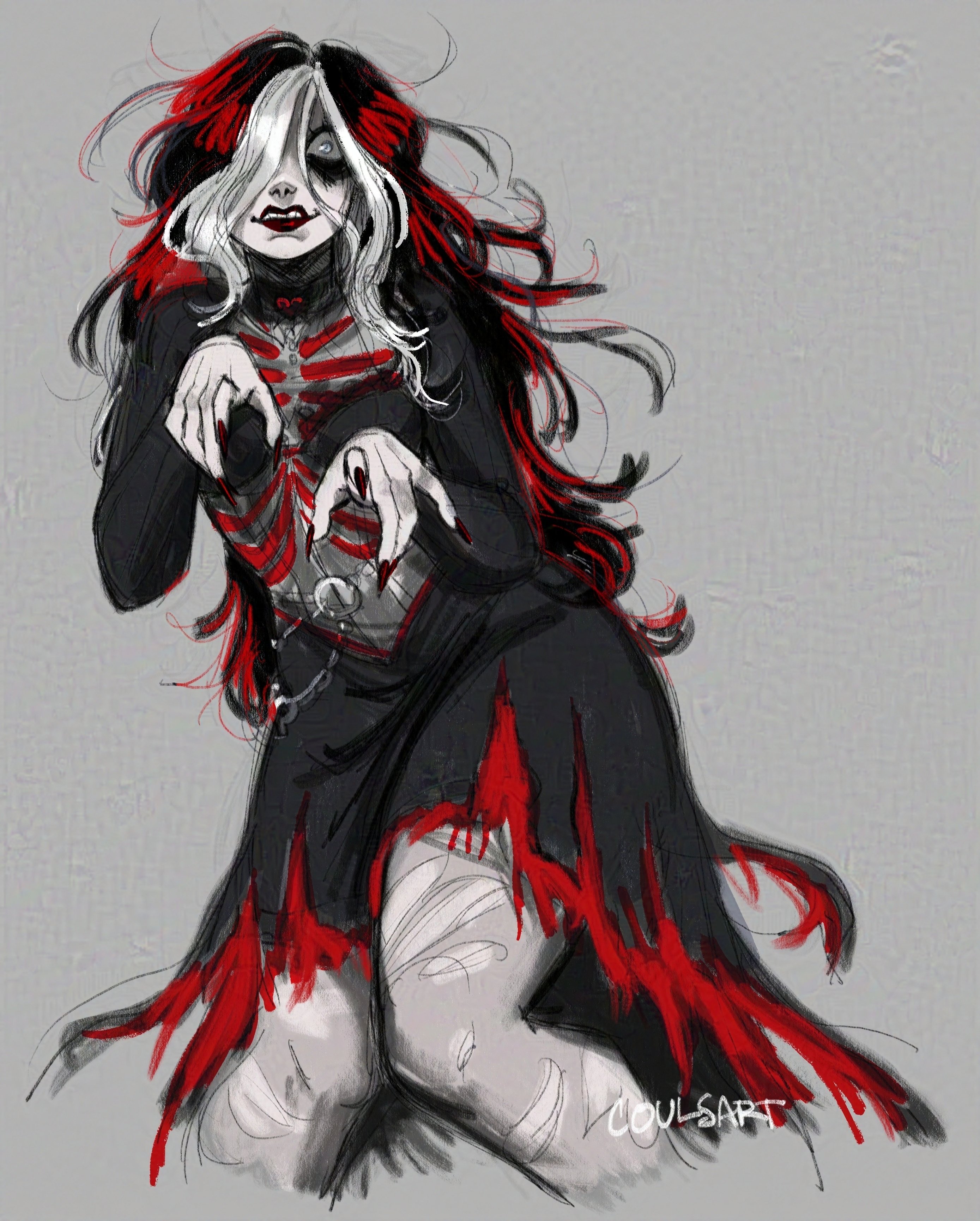 1girlblack brablack chokerblack eyeshadowblack hairbrabra visible through clothesbreastschokercoulsartcrazyemo fashioneyeshadowfingernailsgoth fashiongrey backgroundgrey eyeshair over one eyeheartheart chokerlipsticklong hairlooking at viewermakeupmascaramessy hairmulticolored hairno eyebrowspantyhosepointingpointing at viewerred hairred lipsred nailsred themeribsrunny makeupsharp fingernailsshrug (clothing)signatureskirtsmall breastssmilesolostreaked hairtorn clothestorn pantyhosetorn skirttwo-tone hairunderwearwhite hairwhite streaks