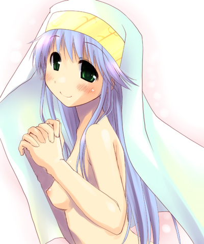 00s1girlblue hairblushbreastscompletely nudefemale focusgreen eyeslong hairnudesmall breastssmilesolo