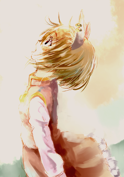 yuzuki (yuduame), beatrice (umineko), ushiromiya ange, ushiromiya battler, umineko no naku koro ni, 00s, 1boy, 2girls, armband, black eyes, blonde hair, blue eyes, bow, brother and sister, bug, butterfly, dress, frills, hair bobbles, hair bun, hair ornament, insect, jacket, multiple girls, necktie, red hair, short hair, siblings, single hair bun, thighhighs