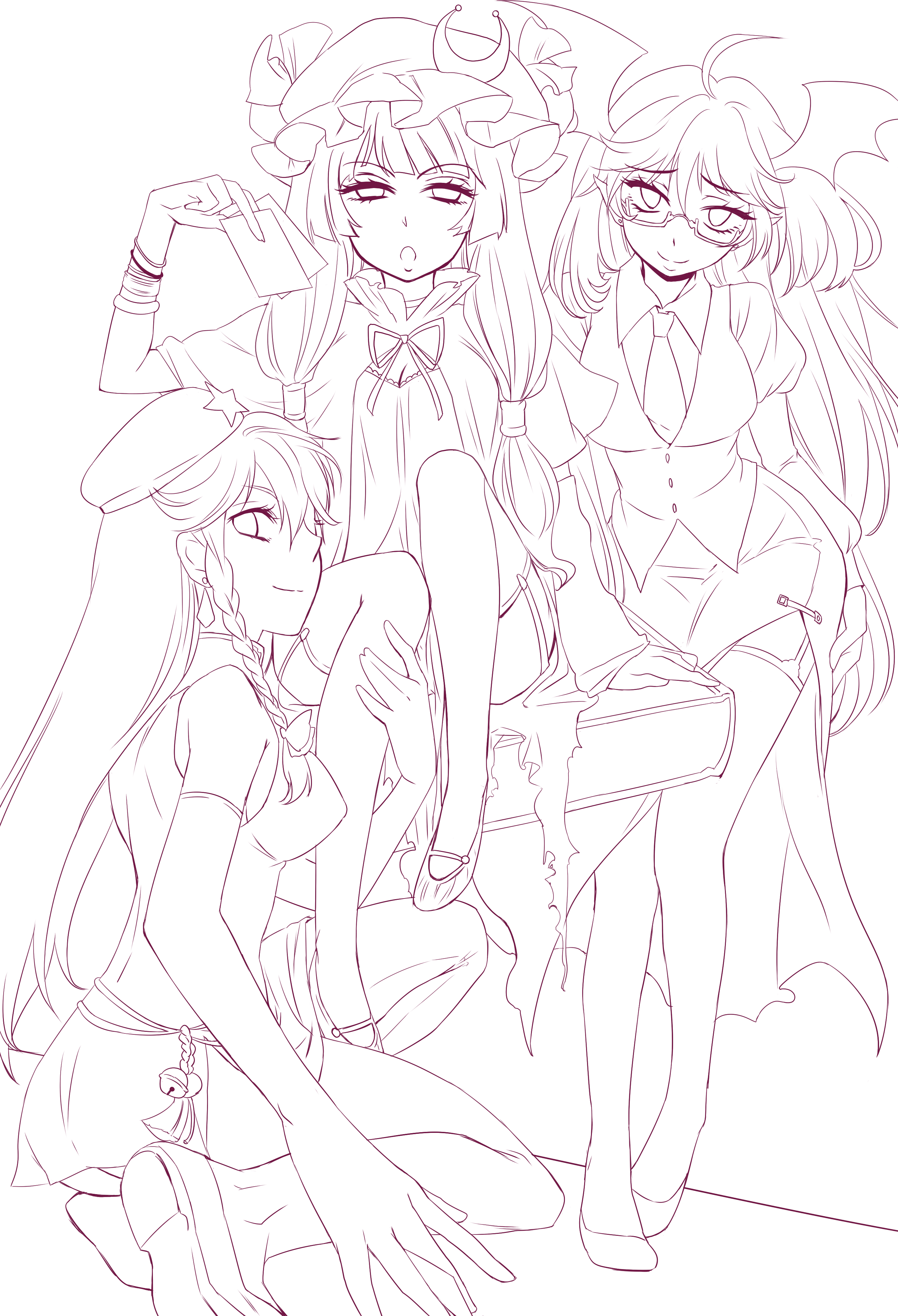 konton hakusai, iizunamaru megumu, shameimaru aya, touhou, highres, 2girls, blue dress, brown hair, collarbone, dress, hat, long hair, multiple girls, necktie, no headwear, pointy ears, red eyes, red necktie, short hair, sleeves rolled up, tokin hat, undone necktie, white background