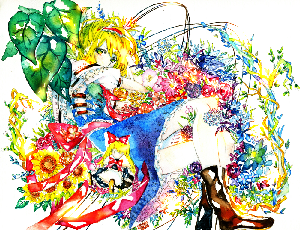 highres, 1girl, belt, beret, blonde hair, female focus, hat, long hair, military, pantyhose, red eyes, ribbon, solo, spurs, sword, weapon, white pantyhose