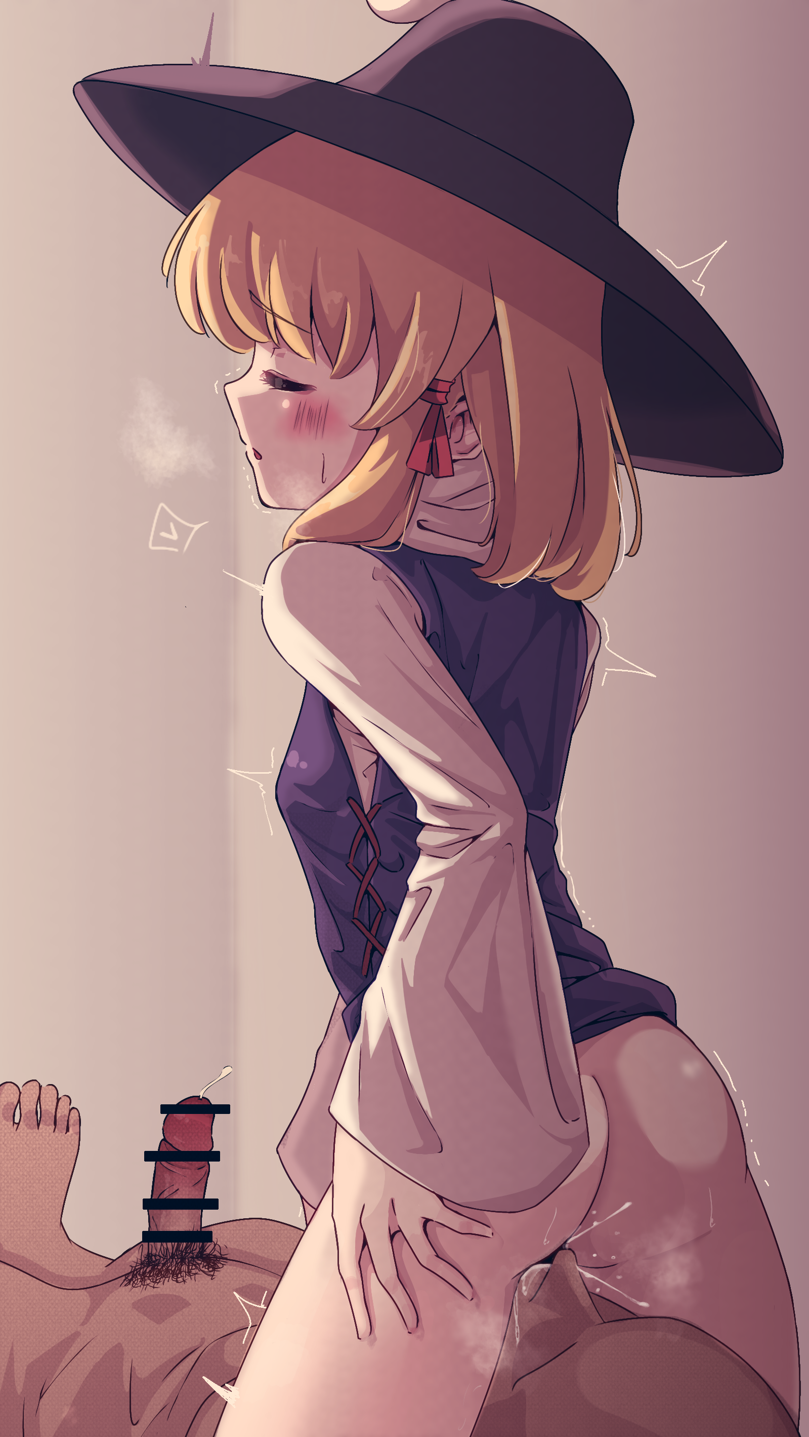 1boy1girlassbar censorblonde hairbottomlesscensoredclosed eyesclothed female nude malecunnilinguserectionhatheteromedium hairnudeoralpenispetitepurple vestshirtsittingsitting on facesitting on personvestwhite shirtwide sleeves
