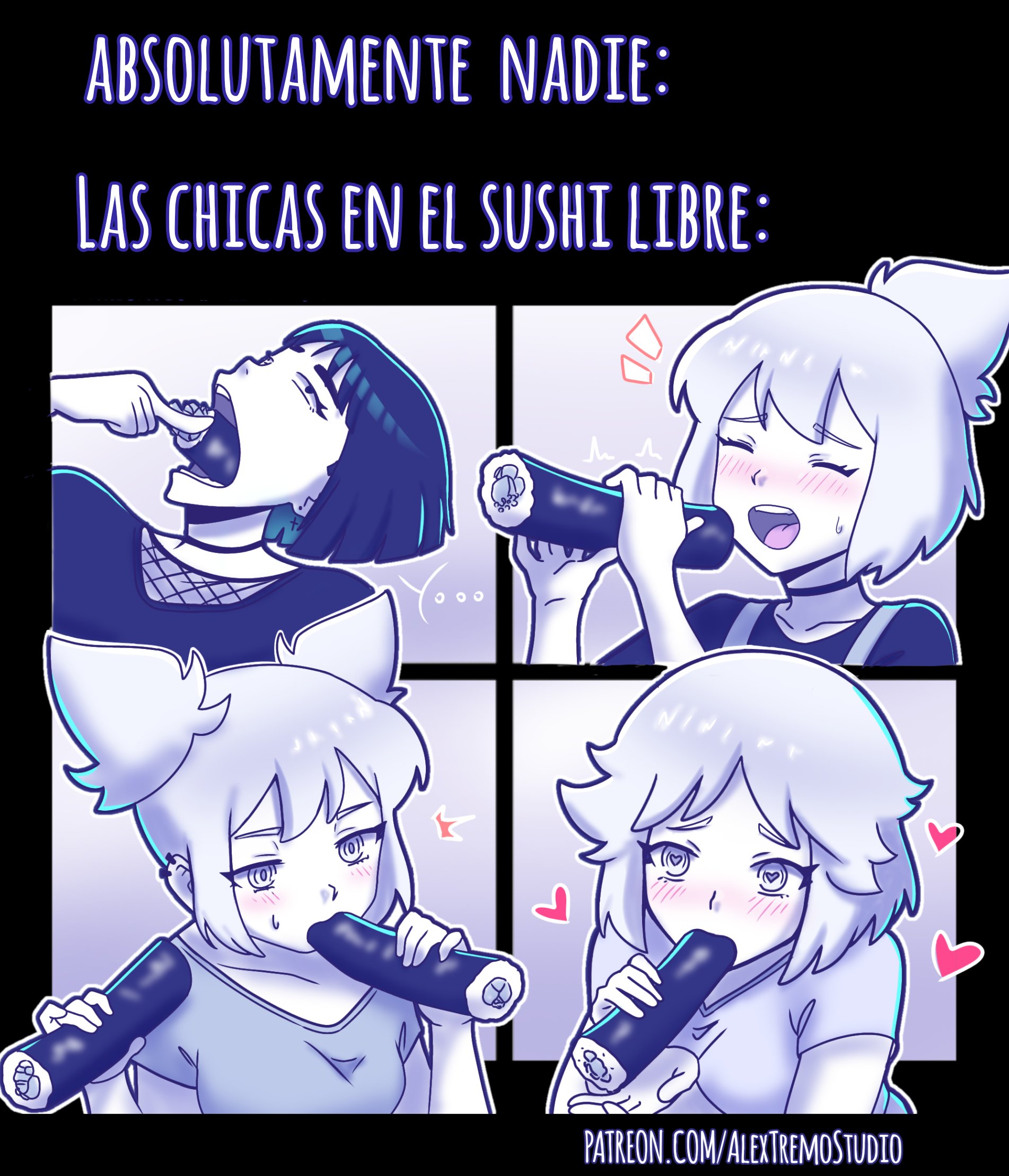 4girlsblushbreastschokercrosscross earringsearringseatingfellatiofishnetsfoodheartheart-shaped pupilsholdingholding foodjewelrymakizushimedium breastsmultiple girlsoralparodyponytailsimulated fellatiospanish commentaryspanish textsushisweatdropsymbol-shaped pupilstwintailswatermarkweb address