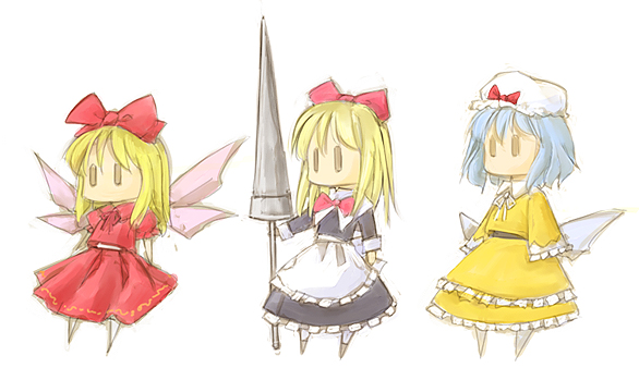 1boyblonde hairblue hairbowchibidolldresshair bowhair ribbonhatlancepolearmribbonsimple backgroundweaponwhite backgroundwings