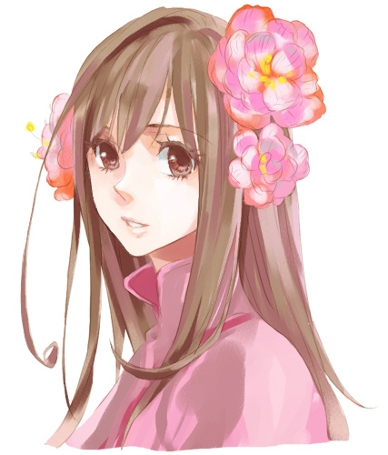 00s1girlbrown eyesbrown hairchina dresschinese clothesdressfemale focusflowerhair flowerhair ornamentlipslong hairplum blossomssolowhite background