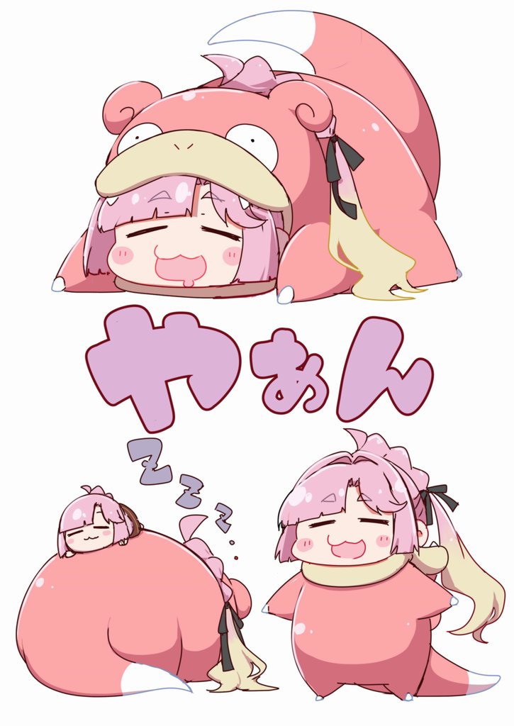:3:d1boy1girlahogeblack ribbonblunt sidelockschibichibi onlyclosed eyescosplaydroolinggen 1 pokemonhair intakeshair ribbonlyingmouth droolmulti-tied hairmultiple viewson stomachopen mouthpokemon costumeponytailribbonsidelocksslowpoke (cosplay)smilestandingvirtual youtuberzzz