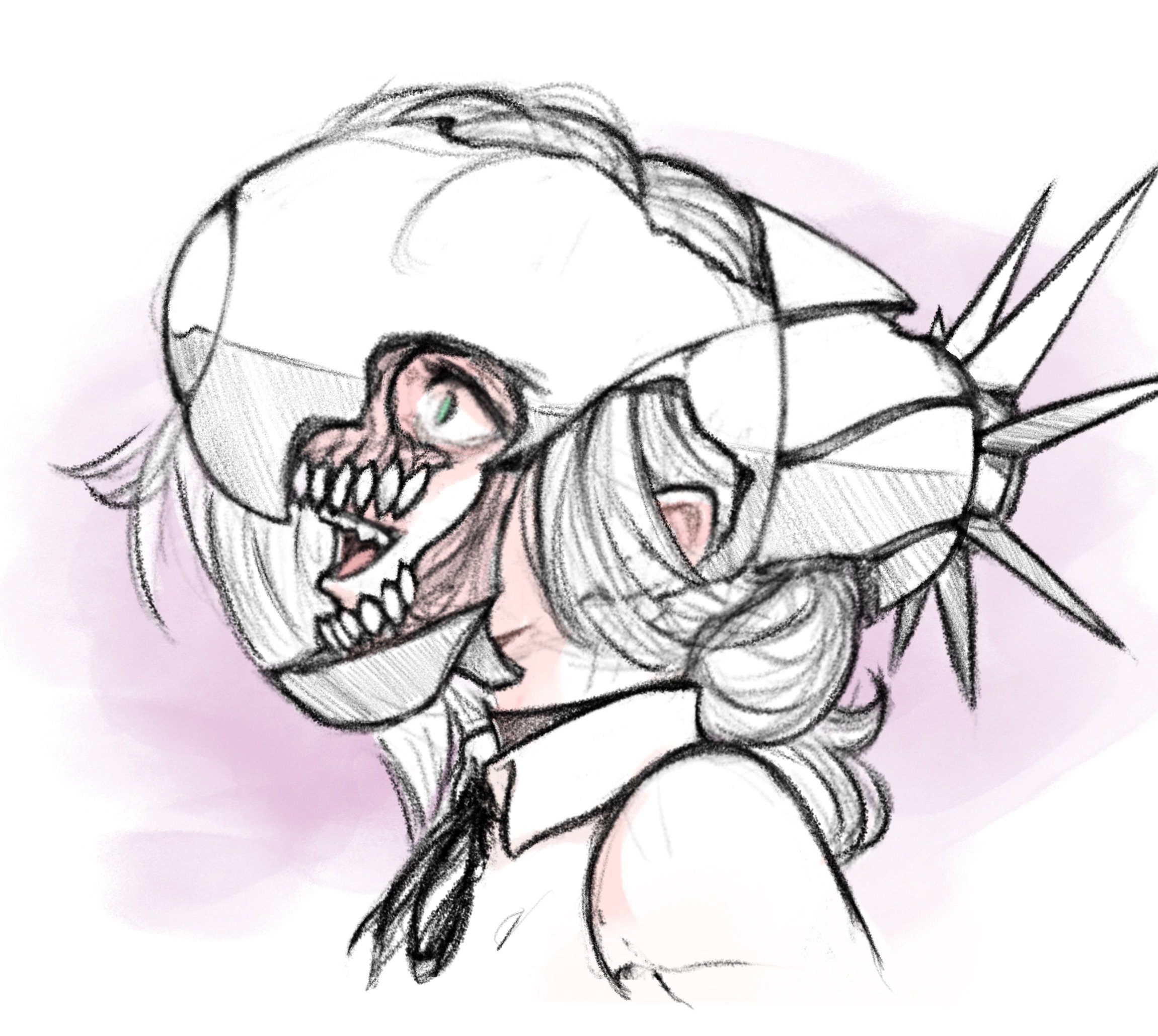 1girlblack ribboncollared shirtfrom sidegreen eyesgrey hairneck ribbonopen mouthribbonshirtsleevelesssleeveless shirtsolowhite shirt