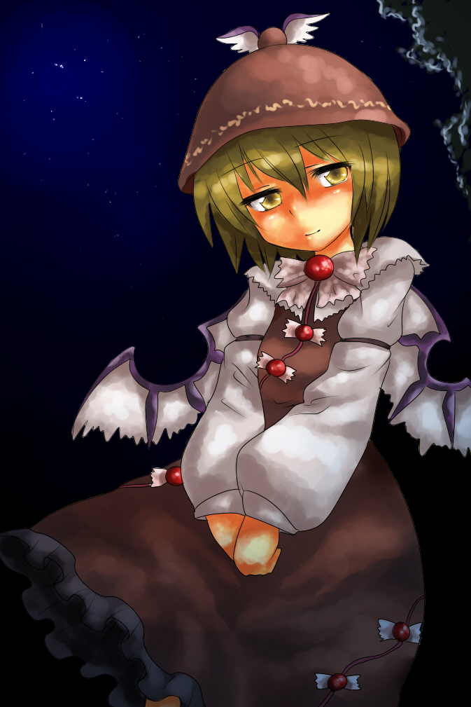 1girlblonde haircosplayfemale focushatmystia lorelei (cosplay)outdoorsshort hairskysolostandingwingsyellow eyes